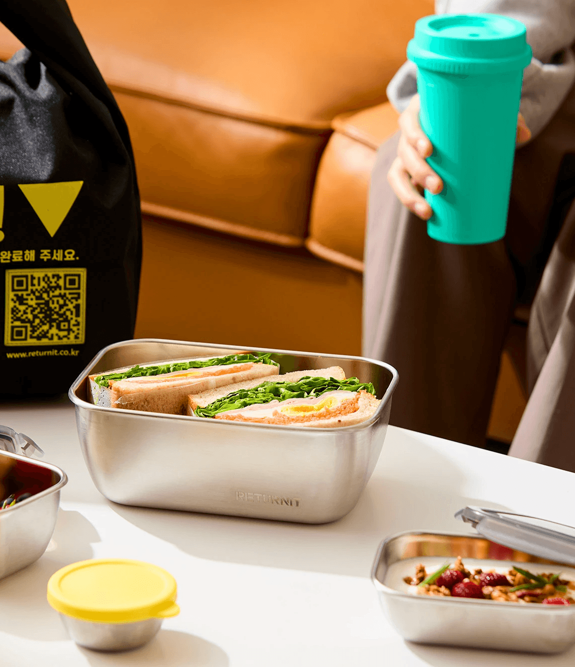 리턴잇 용기에 담긴 쓰레기 없는 식사를 경험하세요