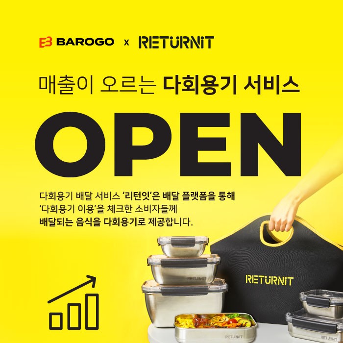 이번 제휴를 통해 바로고 사장님 사이트인 '든든상점' 내에 잇그린 다회용기 배달 서비스인 '리턴잇'이 입점하게 된다.