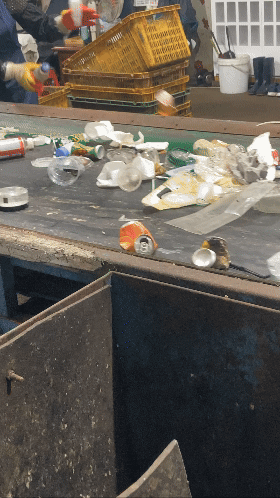 재활용 플라스틱 선별 작업은 대부분 사람이 하고 있습니다. 어마어마한 양의 쓰레기가 부어진 컨베이어 벨트에서 재활용 플라스틱을 선별하는 과정이 진행되는데, 흘러지나가는 쓰레기 컨베이어에서 작은 플라스틱을 골라내기는 어렵습니다. 포장비닐을 뜯을 때 사용하는 칼, 소스통, 수저처럼 작은 플라스틱 제품도 많이 버려집니다. 크기가 작으면 선별하기 힘들고, 어렵게 모았더라도 압축 시켰을 때 양이 너무 작아서 쓸게 별로 없기 때문입니다.